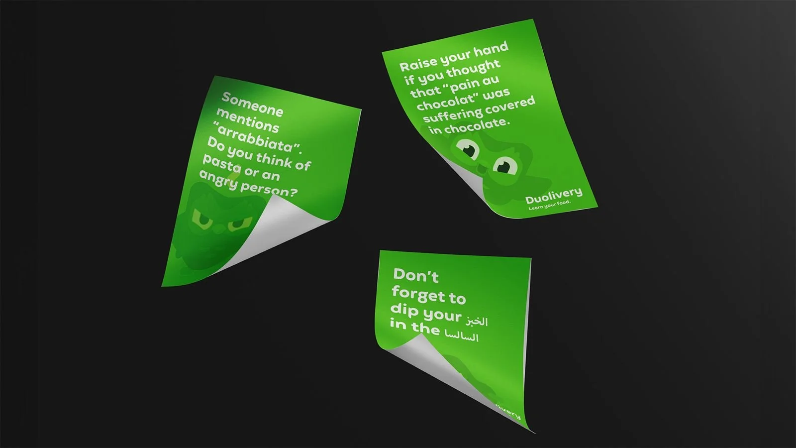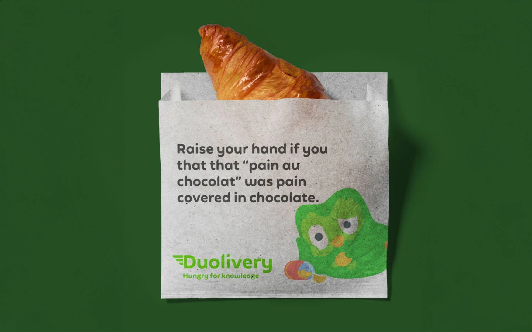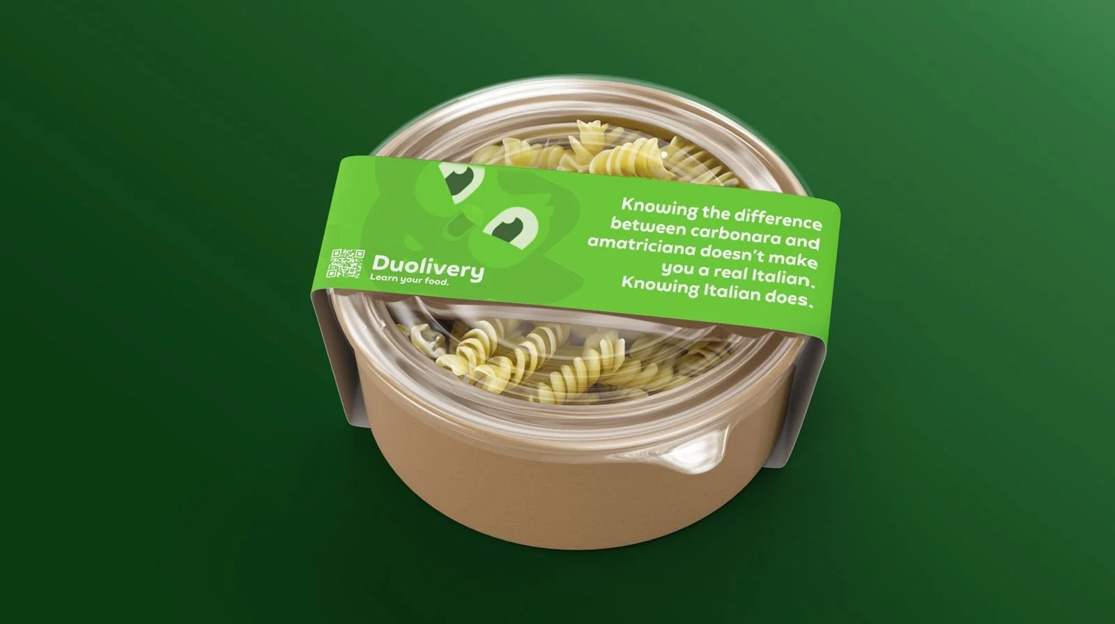 Introducing Duolivery, where every takeout order becomes a language lesson. Turning food into the ultimate reminder—because we all love to explore the world with our stomach, so why not do it with our brain, too?